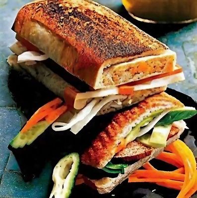 Your choice of fresh Avocado OR Tofu pan-fried in oyster sauce served on a crusty Vietnamese-style French baguette lathered with creamy homemade mayo, soy sauce, pickled carrots, daikon, cucumber and fresh coriander.