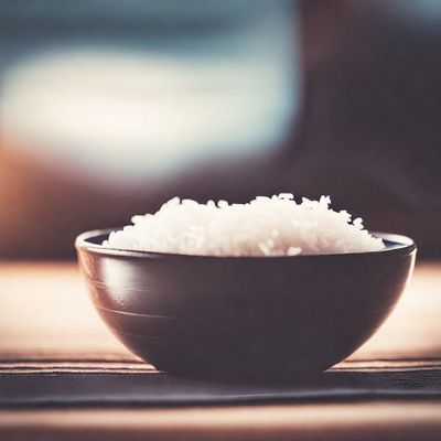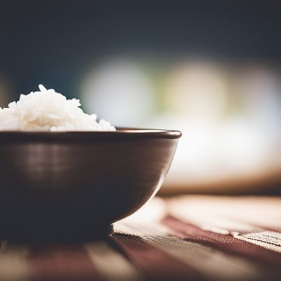 A small serving of fluffy steamed jasmine rice, perfect as a side.