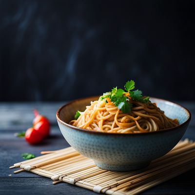 Classic noodle salad with lemongrass grilled chicken, fresh vegetables, and herbs.